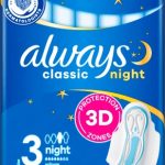 Always dámské vložky Night classic 8ks – jsou určeny k použití na noc nebo pro dny s velmi silnou menstruací. Vložky mají křidélka, která pomáhají udržet vložku na místě a nabízejí ochranu s pocitem čistoty. Navíc mají 3D funkční zóny, abyste se v noci mohla cítit v bezpečí. Jsou jednotlivě balené pro lepší hygienu, takže je můžete nosit všude s sebou. Dopřejte si klidný spánek i během vašich dní s vložkami od značky always.