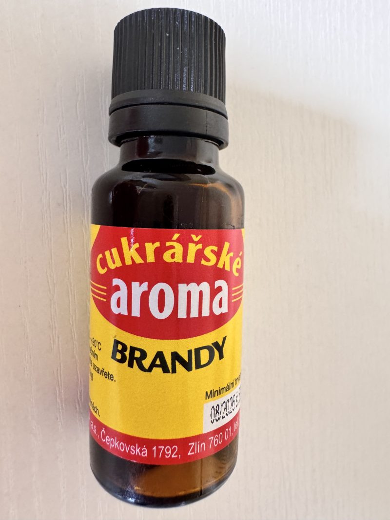 Tekuté potravinářské aroma s bohatou, hřejivou a ovocnou chutí a vůní brandy. Je určeno k ochucování cukrářských výrobků, jako jsou těsta, krémy, polevy, dorty, pralinky, cukrovinky nebo nápoje, včetně domácího punče, likérů a koktejlů. Dodává pokrmům a nápojům výraznou příchuť brandy, ideální pro vánoční pečivo, čokoládové dezerty nebo horké nápoje. Aroma je vyrobeno na bázi lihu a vody, neobsahuje geneticky modifikované suroviny.