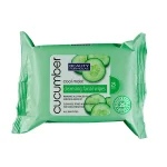 Čistící ubrousky s extraktem z okurky dokonale osvěží a šetrně zbaví Vaši pleť mastnoty, nečistot a make-upu. Jednoduché a rychlé použití, esenciální pro zdravou a zářivou pokožku. Vhodné pro všechny typy pleti. Čistí, hydratuje a dodá Vaší pleti svěžest.