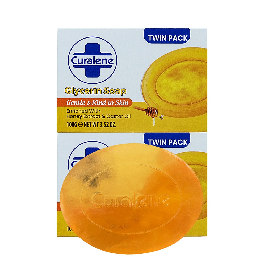 Curalene tuhé mýdlo Glycerin Natural Honey 100g – mýdlo je navrženo tak, aby poskytovalo jemnou péči o pokožku díky glycerinu, medovou extraktu a ricinovému oleji, které pomáhají udržovat pokožku hydratovanou a měkkou. Je ideální pro každodenní použití na obličej, tělo a ruce.