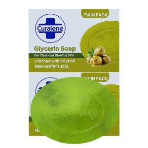 Curalene tuhé mýdlo Glycerin Olive oil 100g – Tuhé glycerinové mýdlo. Vaše ruce zůstanou po umytí hebké a vláčné. Olej obsažený v mýdle pečuje o pokožku a účinně ji vyživuje. Pro všechny typy pleti. Příjemná a svěží vůně Vám dodá pocit čistoty a svěžesti.