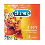 DUREX FEELS  3 ks pánské ochrany. Prezervativy Durex Feels mají zvýšenou lubrikaci pro co největší citlivost. Vyrobený z velmi jemného a tenčího latexu, který zachovává výhody velmi vysoké bezpečnosti kondomu a dokonalou citlivost. Dermatologicky a klinicky testováno.