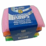 Balení obsahuje 5 kusů v různých barvách (např. modrá, zelená, žlutá, dle dostupnosti), což usnadňuje rozlišení při použití na různé úkoly. Houbičky jsou vhodné pro domácí použití a lze je použít s běžnými mycími prostředky.
