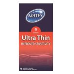 Mates kondomy Ultra thin improved sensitive 9ks – Tenké kondomy slavné značky Mates.