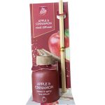 Dekorativní osvěžovač vzduchu s ratanovými tyčinkami, určený k provonění interiéru domácnosti, kanceláře nebo koupelny. Tento difuzér kombinuje hřejivou vůni skořice s ovocnými tóny jablka, která navozuje útulnou a sváteční atmosféru, ideální pro podzimní nebo vánoční období. Ratanové tyčinky absorbují vonnou esenci z lahvičky a postupně ji uvolňují do prostoru, přičemž vůně vydrží přibližně 4–6 týdnů v závislosti na počtu tyčinek, teplotě a větrání místnosti. Balení obsahuje skleněnou lahvičku s náplní 50 ml a 5 ratanových tyčinek. Kompaktní velikost je vhodná pro menší prostory, jako jsou koupelny, chodby nebo ložnice, a produkt je dodáván v elegantním dárkovém balení.