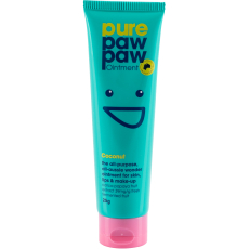 Multifunkční kosmetický přípravek od australské značky, vyrobený z čerstvého 100% australského papájového ovoce. Tento balzám s příjemnou kokosovou vůní intenzivně hydratuje a chrání suchou nebo popraskanou pokožku, rty a nehtovou kůžičku. Aktivní enzymy z papáji pomáhají hojit drobné rány, popáleniny, podráždění a zjemňují pokožku. Balzám lze použít také jako podklad pod make-up, k ošetření suchých míst na těle nebo k regeneraci kůže po opalování. Kompaktní balení je ideální na cesty a obal je 100% recyklovatelný. Produkt je součástí řady s 7 různými příchutěmi, přičemž kokosová varianta evokuje exotickou atmosféru tropické dovolené.