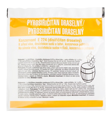 1 g disiřičitanu draselného představuje 0,575 g účinné látky oxidu siřičitého SO2