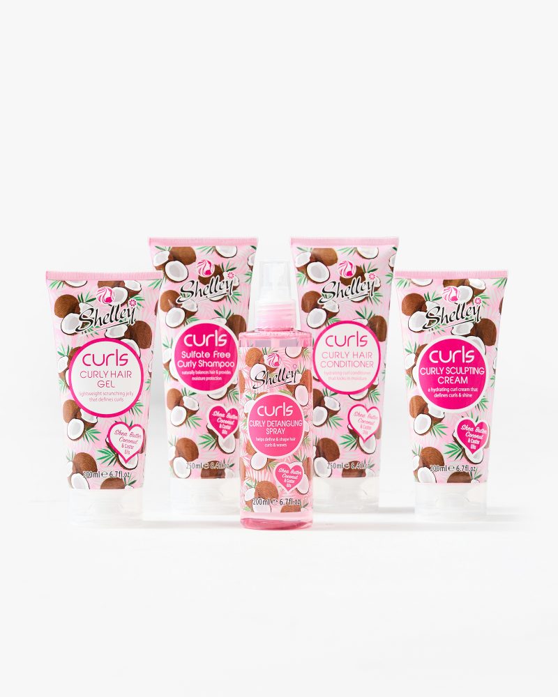 Řada Shelley Curls byla vytvořena speciálně pro přirozeně kudrnaté vlasy – vyživuje, hydratuje a zvýrazňuje jejich přirozený tvar. Naše produkty zkrotí neposedné pramínky, odstraní poletující vlasy a zanechají tvé lokny nádherně lesklé, pružné a snadno upravitelné.